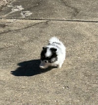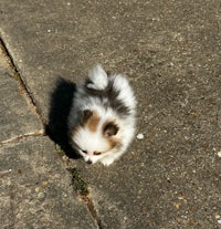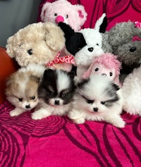Parti-color teacup male born 2/6/2025; gauging about 3-3.5lbs full grown. Text us first before phone call.*