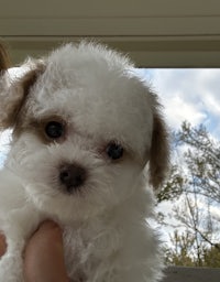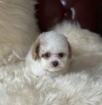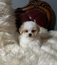 Parti-color very small male born 9/11/2024; hypoallergenic, no shedding, & super friendly. Text us first before phone call.*